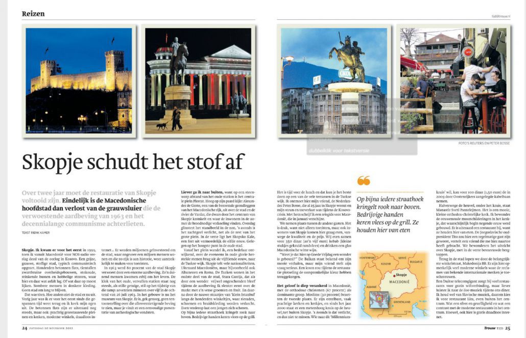 Eind 2012 schreef ik voor dagblad Trouw een artikel over de Macedonische hoofdstad Skopje.
